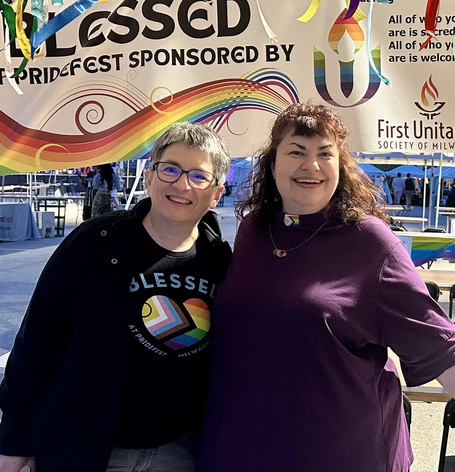 I was married and partnered with my wife for over 23 years, and we created a lot of good in the world. We divorced. I now live with my spouse Rev. Matt Aspin, who is also a Unitarian Universalist. We love ministering together. We currently live in Milwaukee, WI where we enjoy raising our kids, laughing at our dogs, gardening, cooking, writing, being in nature, and scheming for good together every chance we get. I am famous for foraging in my kitchen to make amazing meals. You can find us swimming, canoeing, fishing (I mostly swim, paint and draw. They mostly fish), playing fierce games of Uno and making puzzles. We all love nature, and we like naps too.